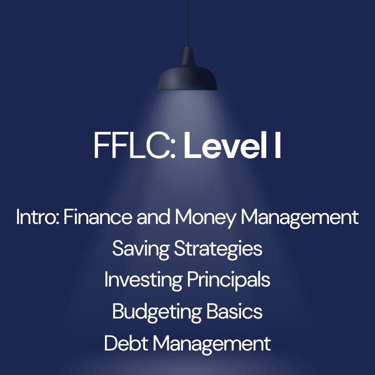 FFLC Level I is an introductory course to wealth building. Covered topics include Budget Basics, Finance & Money Management, Saving Strategies, Investing Principals, and more. Sample templates are included for you to quickly become comfortable with and take command of your finances.
