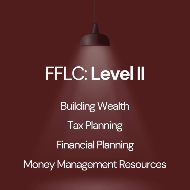 FFLC Level II is our advanced course in wealth building. Covered topics include a comprehensive analysis of Building Wealth, Tax Planning, Financial Planning, Money Management Resources, and more. More advanced templates, sheets, and examples are included for a powerful insight into your finances.